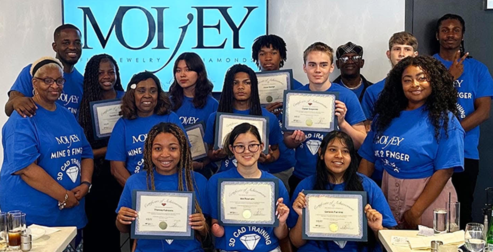 Our Moijéy Mine to Finger CAD course is a comprehensive class that builds your confidence as a jeweler, covering gems, diamonds, CAD design, and bench techniques with expert instruction and hands-on demonstrations.